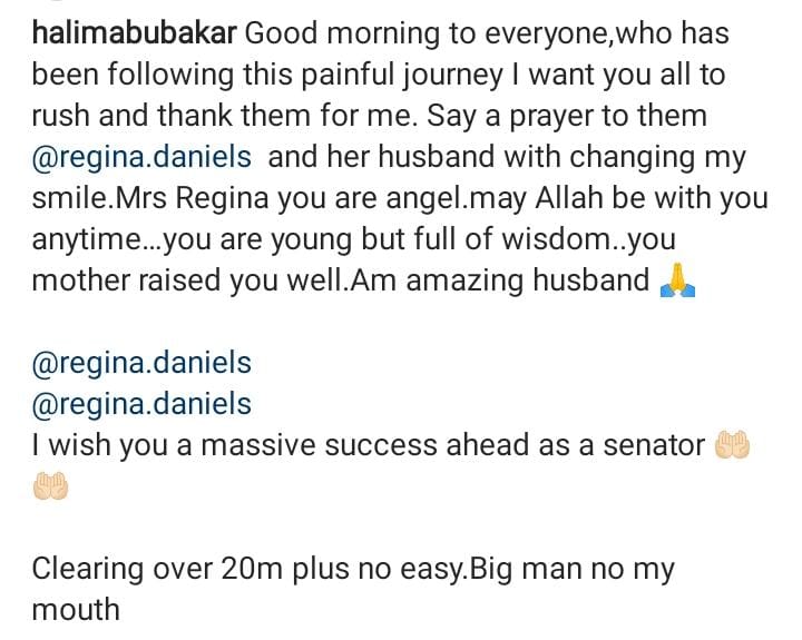 @regina.daniels and her husband with changing my smile.Mrs Regina you are angel.may Allah be with you anytime…you are young but full of wisdom..you mother raised you well.Am amazing husband. I wish you a massive success ahead as a senator. Clearing over 20m plus no easy. Big man no my mouth.”
