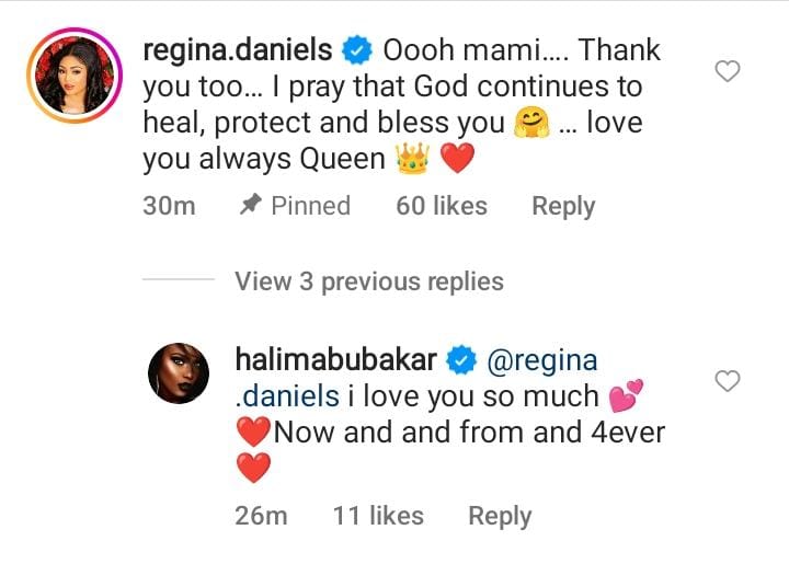 “Regina.daniels Oooh mami. Thank you too. I pray that God continues to heal, protect and bless you. love you always Queen 👑 ❤️.”