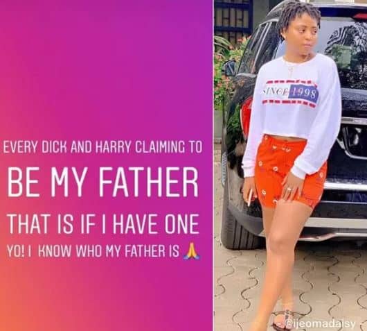 “Every Dick and Harry claiming to be my father.. That is if i have one. Yo! I kmow who my father is..” Regina Daniels wrote on Social media.