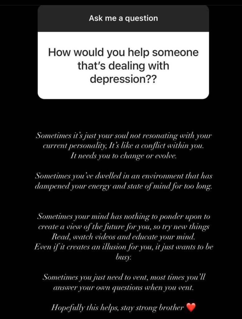 One of Rema’s fans asked him how he would help someone dealing with depression. Without hesitation, Rema penned lengthy soothing words to him, sharing insights on how to deal with such a situation.