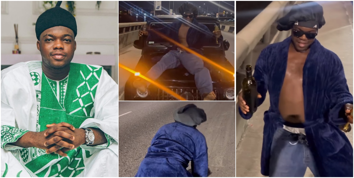 In one of the videos, Cute Abiola could be seen seated on the bonnet of a moving car, dressed in a robe and bonnet, jubilantly celebrating with a bottle of drink.