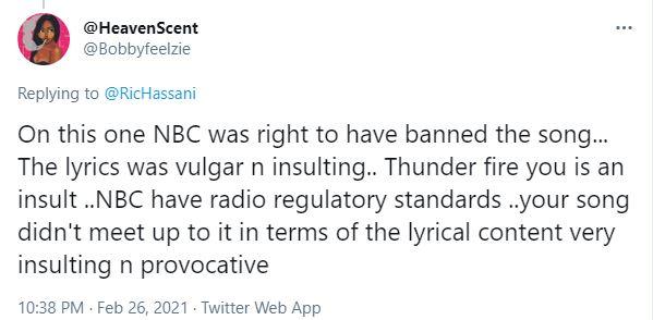 The singer who is currently dating the veteran singer, Waje, took to Twitter to clear the air on how the Nigeria Broadcasting Commission, NBC, banned his song and threatens to fine radio stations that play the song.