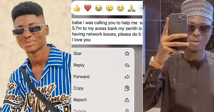 “Babe, I was calling you to help me send N5.7 million to my Access Bank as my Zenith Bank is experiencing network issues. Please do it fast. I love you.”