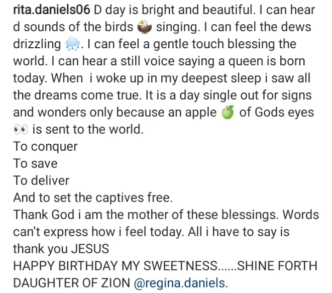 Rita Daniels pens down emotional message to daughter, Regina Daniels on her birthday
