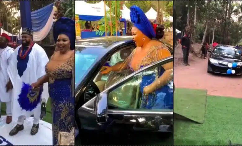 A Nigerian groom melts the heart of his bride at their wedding ceremony after surprising her with a new car as a token of appreciation.