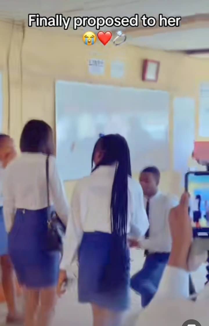 The uni student had arranged a surprise marriage proposal for his partner in their classroom which was occupied by some coursemates who came to bear witness.