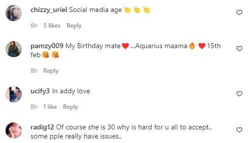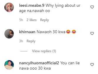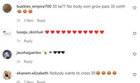 “30 ke?? No body won grow pass 30 oohh ???,” a user wrote, while others added their subtle remarks claiming that the darling wife of Olakunle Churchill made up her age to feel younger.