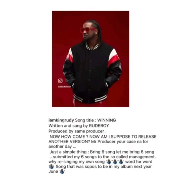 “Just a simple thing : Bring 6 song let me bring 6 song … submitted my 6 songs to the so called management. why re-singing my own song 🤷🏾♂️🤷🏾♂️🤷🏾♂️ word for word 🤷🏾♂️ Song that was supposed to be in my album next year June 🤷🏾♂️”.