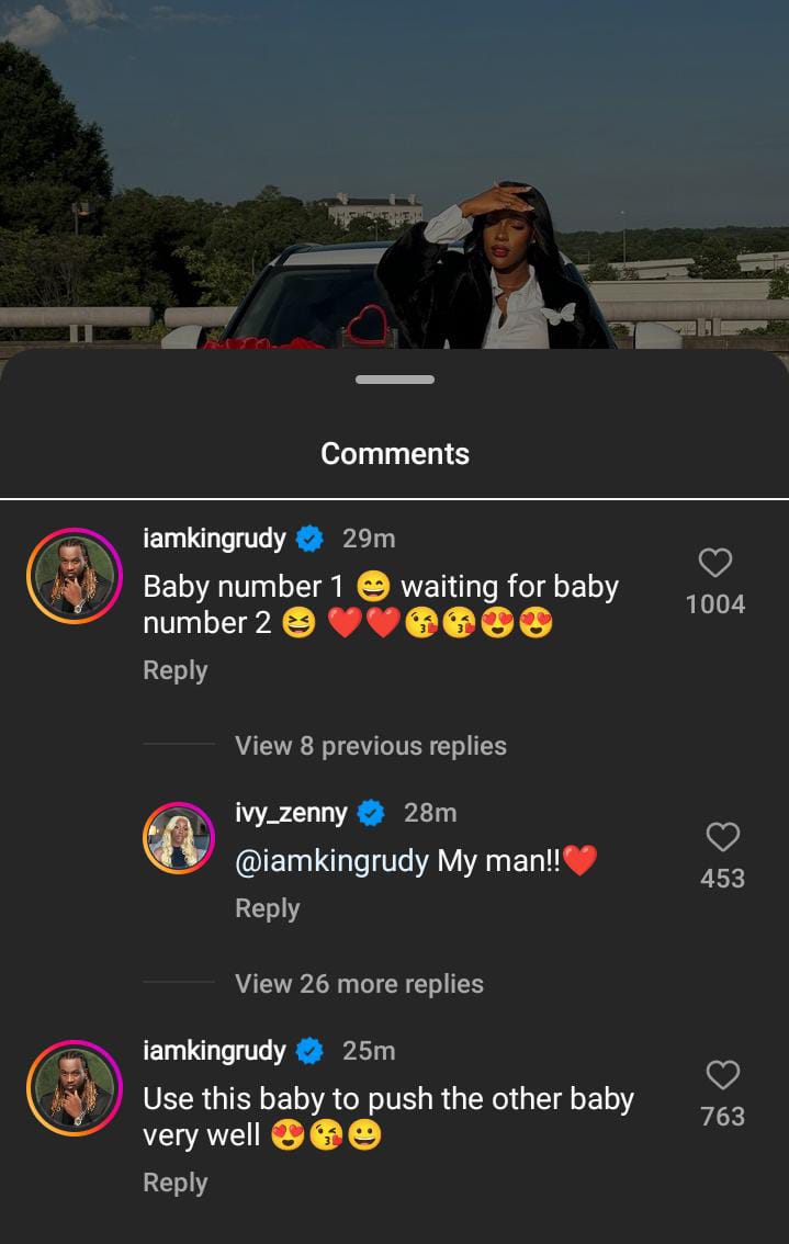 Reacting to the post, Rudeboy wrote: “Baby number 1 😄 waiting for baby number 2 😆 ❤️❤️😘😘😍😍 Use this baby to push the other baby very well 😍😘😀”