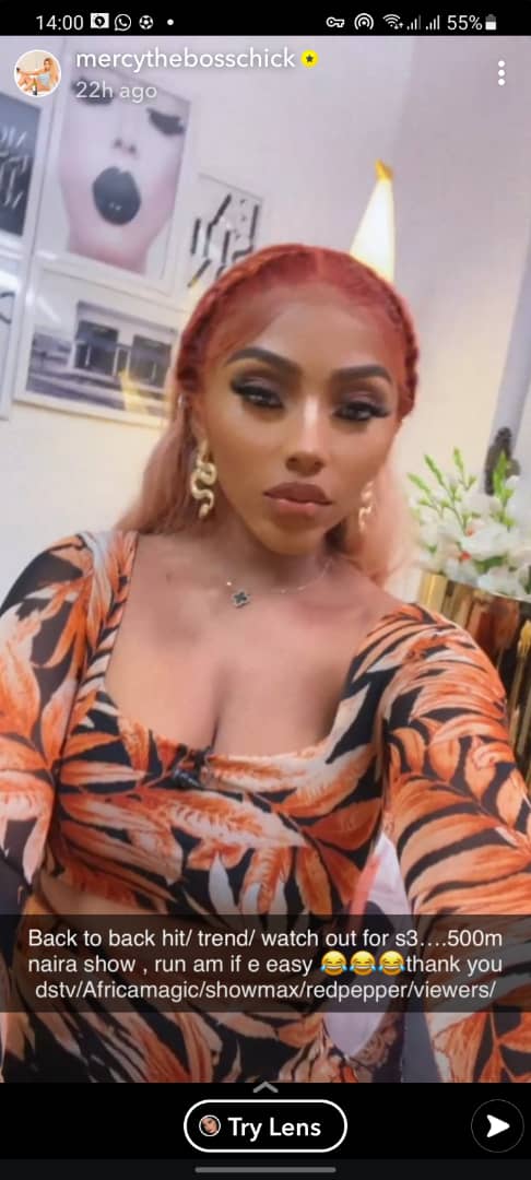 Reality TV star, Mercy Eke has bragged over her recently launched reality show as she discloses that it is worth N500M.
