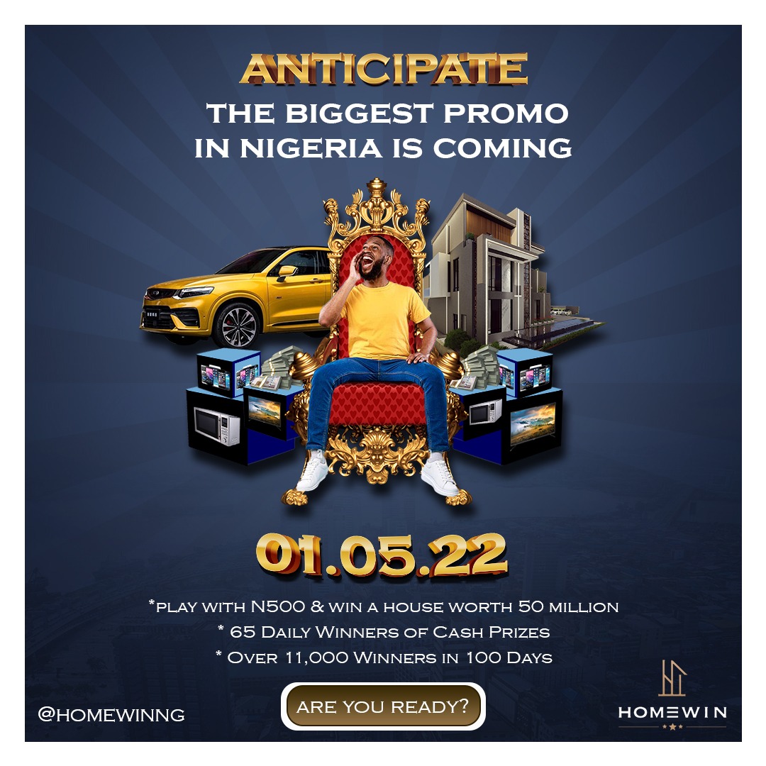 For the first time in a long while, Nigerians can now dream of becoming a Landlord in Lagos and win other amazing prizes with just Five Hundred naira (N500) as HOMEWIN, Nigeria’s biggest promo ever launches on May 1st, 2022!