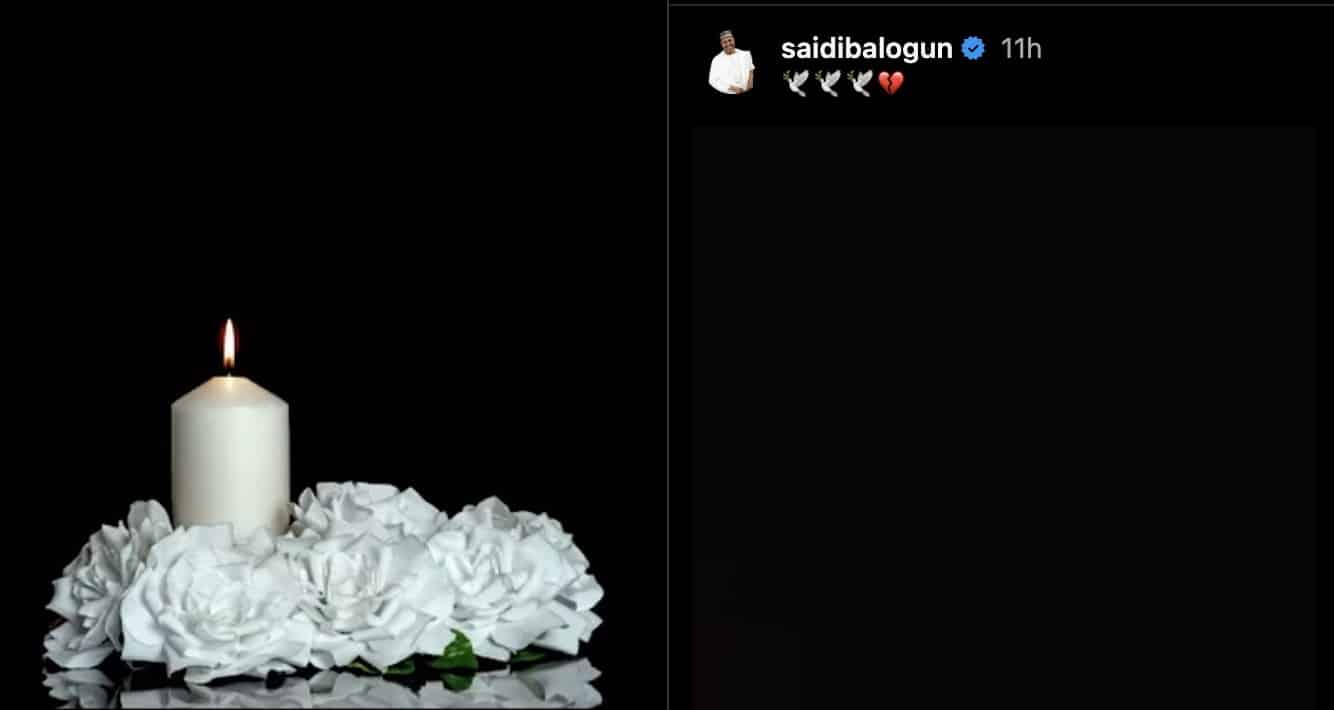 In his post, Saidi Balogun posted a solemn image of candlelight surrounded by flowers, accompanied by heartbroken emojis, signalling the depth of his grief.