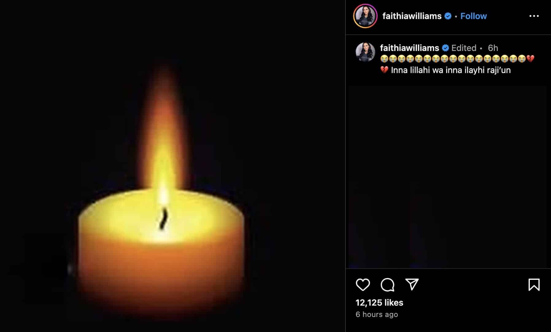 His estranged wife, Fathia Williams also commiserated with her ex-husband on the passing of her stepdaughter. In a post, she wrote, “😭😭😭😭😭😭😭😭😭😭😭😭😭😭😭😭😭💔💔 Inna lillahi wa inna ilayhi raji’un.”