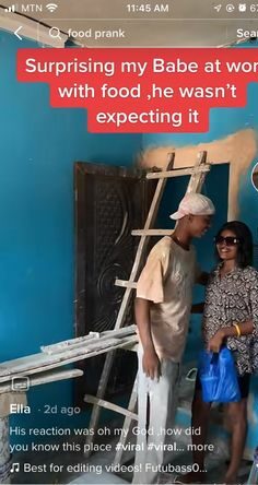 The man who looked surprised came down from the ladder and hugged her girlfriend while taking the food from her. Some social media users have reacted to the video and have praised the young lady.