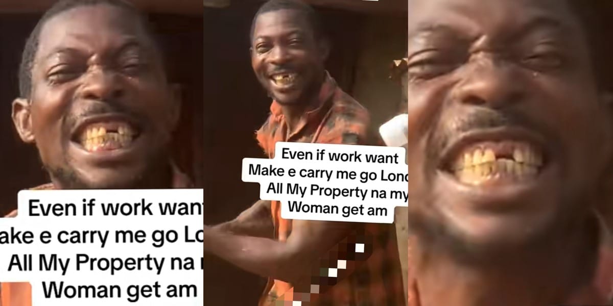 “See my teeth, my woman still love me” – Internet melts as bricklayer vows wife will inherit all his properties for loving him
