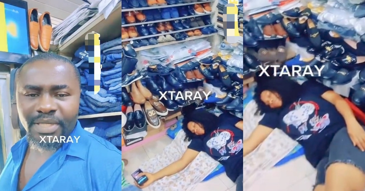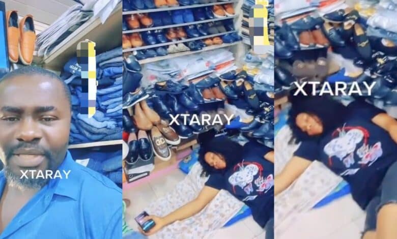“See person I open shop for” – Businessman catches wife sleeping in her new boutique (Video)
