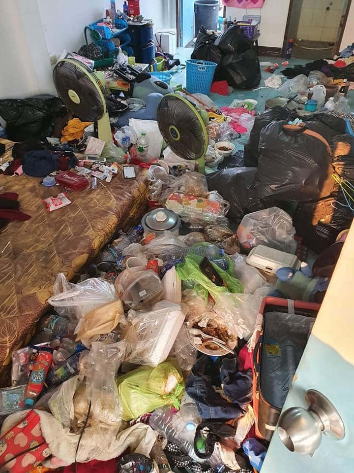 What confronted her was a terrible sight – trash like leftover food and old clothes and foam was everywhere. It stank and in the bathroom were feces wrapped in a towel. There were maggots everywhere.