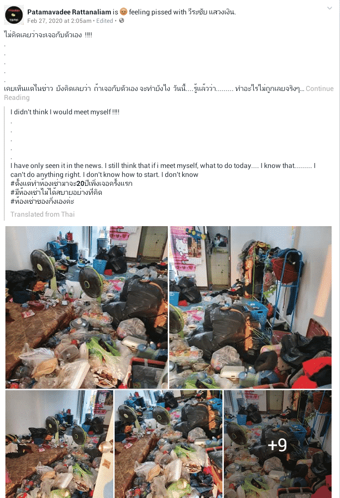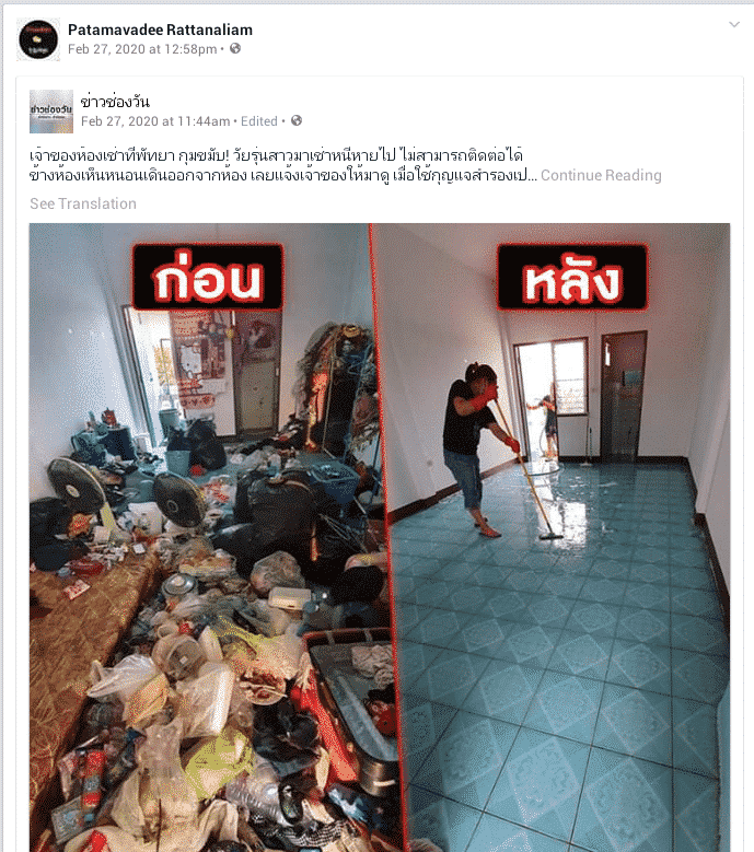 Patamavadee who had no choice, had to clean up the room herself, and shared pictures of the neat room on Faecebook afterwards.