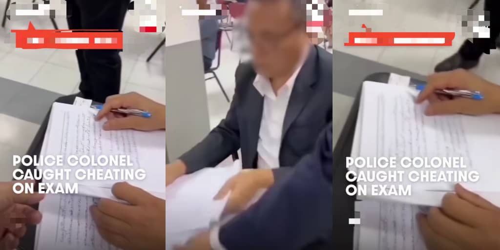 A senior police officer, ranked Police Colonel, was caught attempting to cheat during the Administrative Court Judge entrance exam.