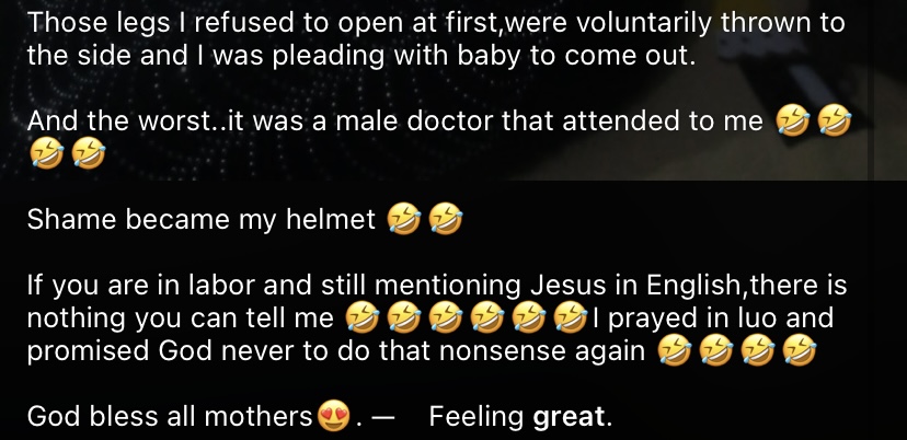 “Shame became my helmet. If you are in labor and still mentioning Jesus in English, there is nothing you can tell me. I prayed in Luo and promised God never to do that nonsense again.