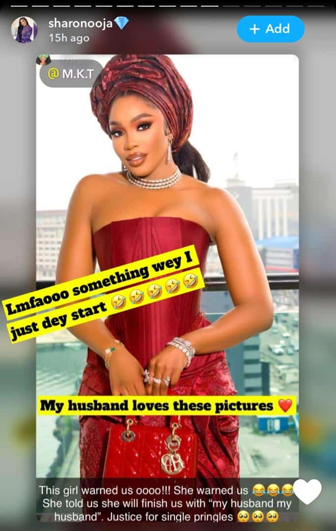 “This girl warned us o! She warned us. She told us she will finish us with “my husband my husband”. Justice for single pringles,” her friend stated.