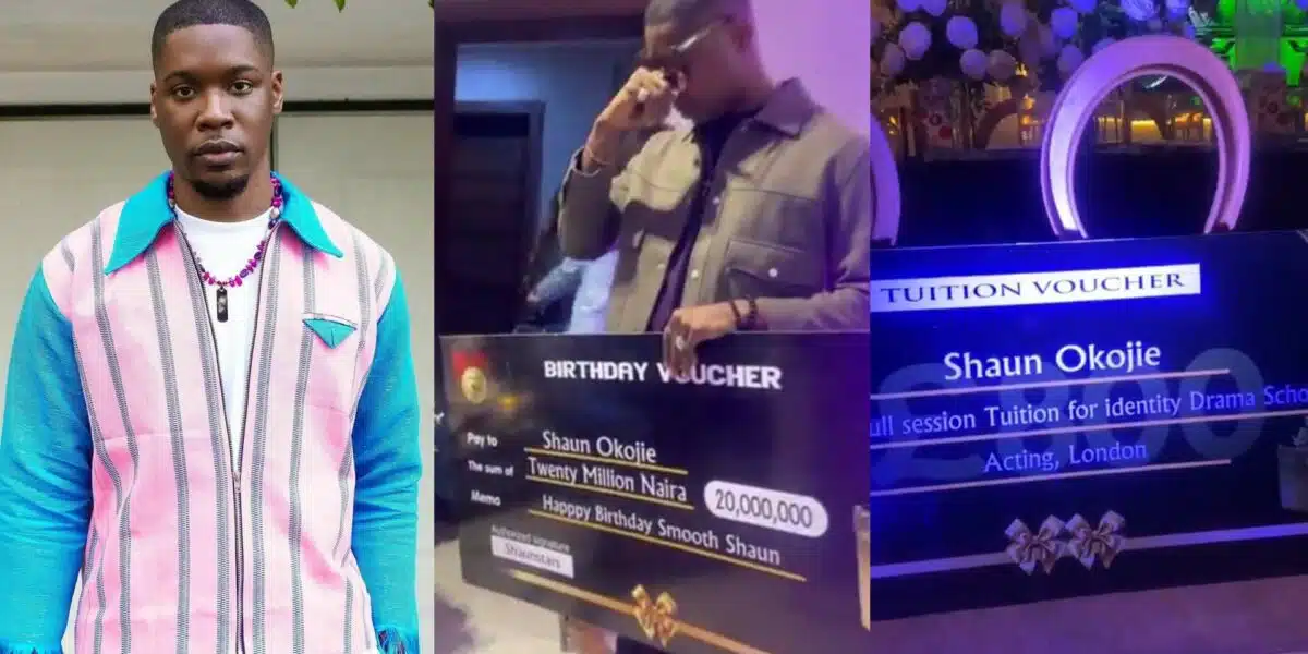 Reality star, Shaun gets teary as he receives N20M, full tuition for London drama school, and other expensive gifts from his fans for his birthday.