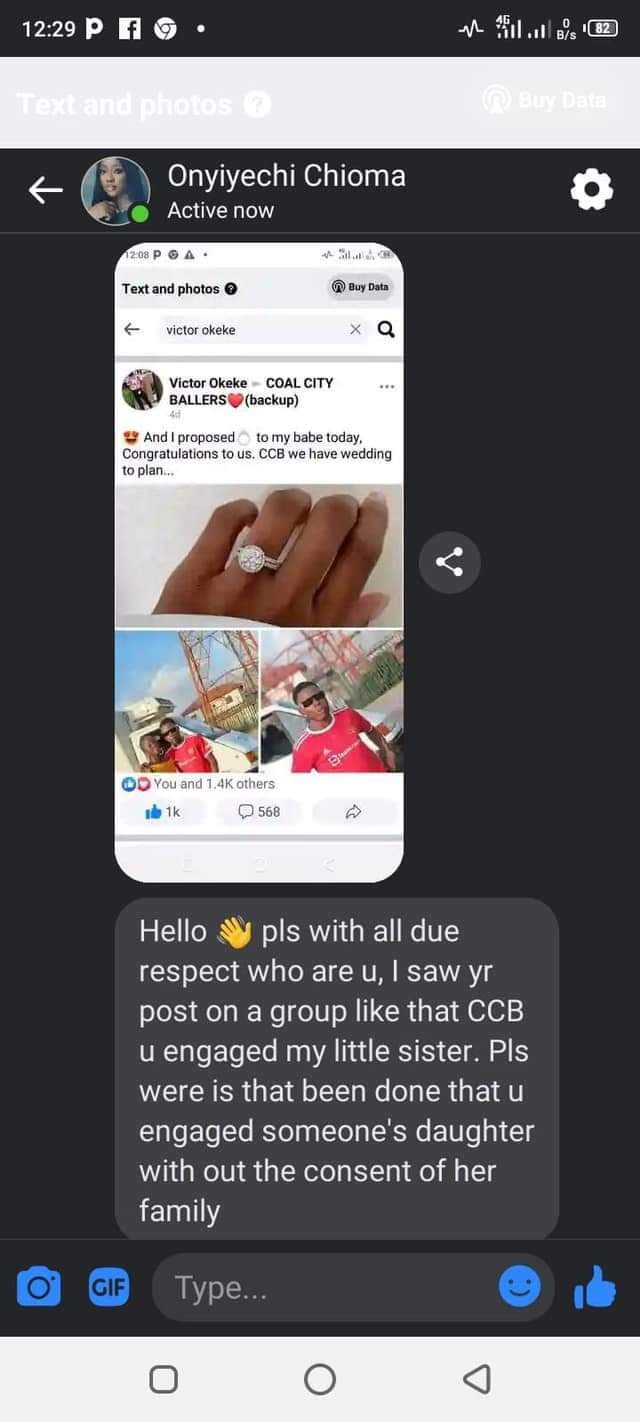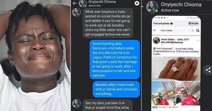 “She can never marry before me” – Chats leak as lady blasts man for getting engaged to her younger sister (Video)