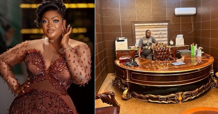 Popular Nollywood actress Eniola Badmus has shown off her luxury well-furnished office shortly after Tinubu resumed office.