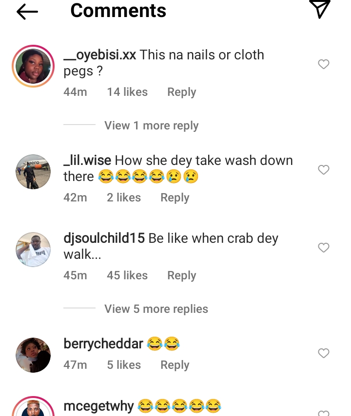 _oyebisi.xx wrote: “This na nails or cloth pegs ?”