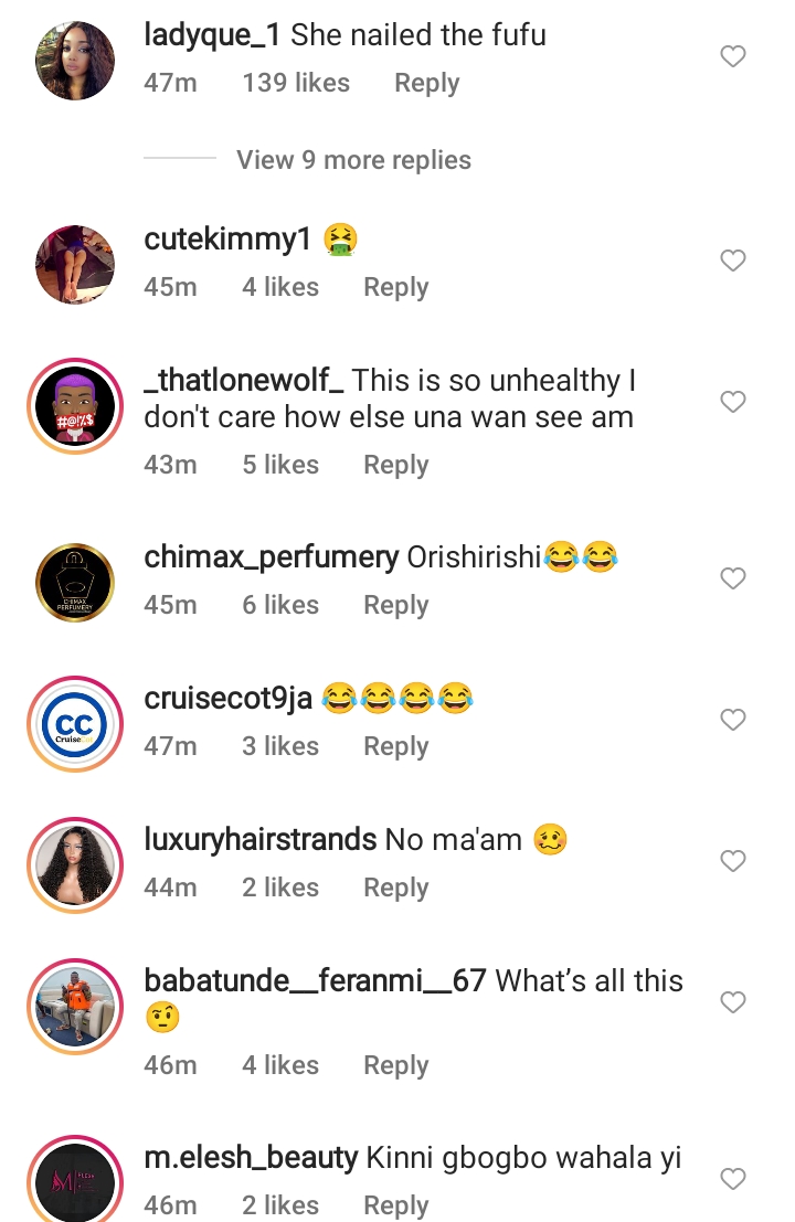 “She nailed the Fufu” – Reactions as lady uses long colorful nails to eat fufu (Video)