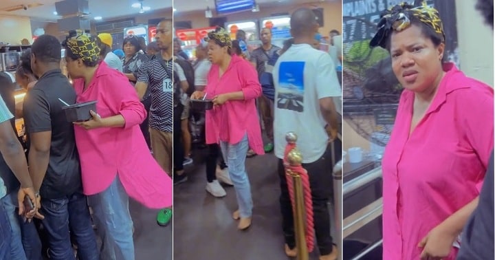 “She no even wear slippers” – Nigerian lady shares rare video after bumping into Toyin Abraham at fast food