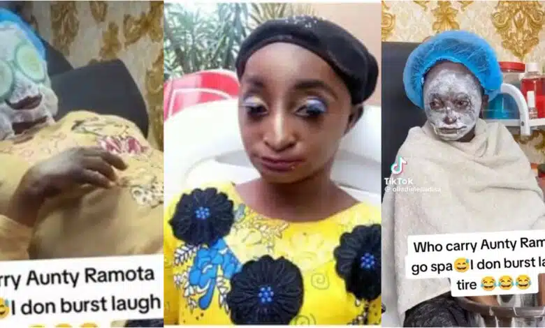 In the video, Aunty Ramota was seen being pampered at the spa by the spa attendant as she rubbed a beauty cream on her face.
