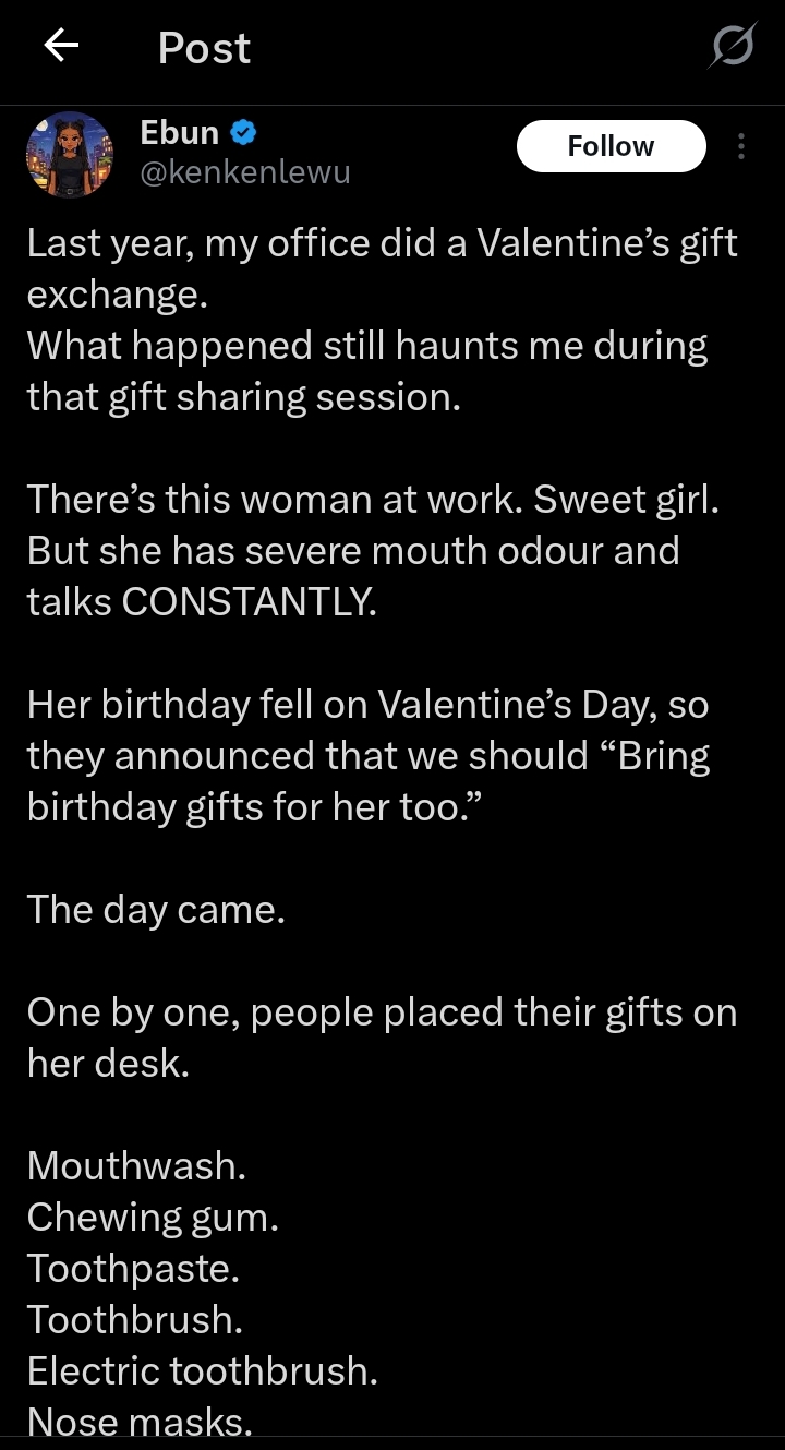 “She was unhappy”- Lady shares valentine gifts female colleague received at work