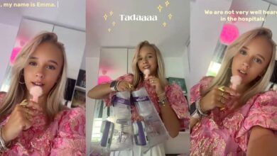 “She will wear it till SS3” – Video of primary school girl walking on the road in overflowing uniform causes buzz online