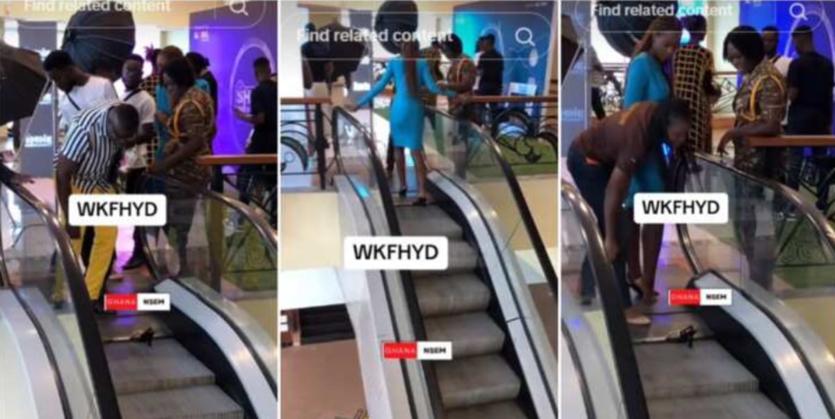 A video has surfaced on social media, capturing the harrowing moment at a local shopping mall when a lady’s heel got stuck on an escalator, leaving her momentarily stranded at the zenith of the moving staircase.