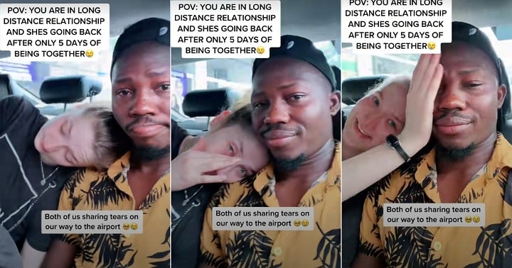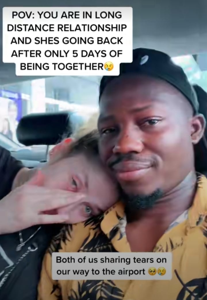 A young man has shared a touching video shedding tears with his oyinbo lover as she departs after a five-day visit.