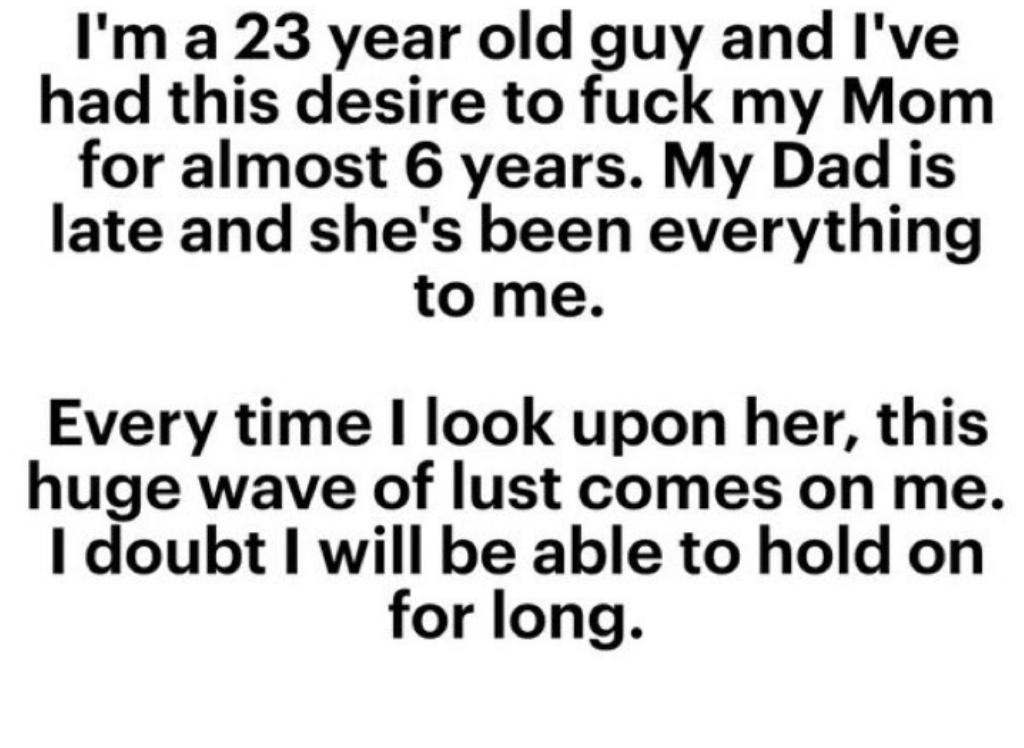 According to the post by the man, he describes himself as a 23-year-old, who desires to have sex with his mother. He stated that he has nursed the thought for almost 6 years now.