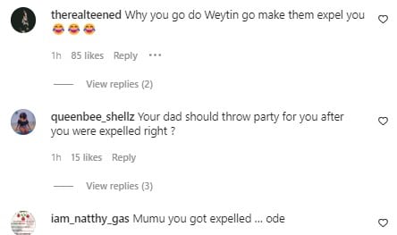 Social media users, however, questioned the young man about his possible expectation from his father following his dismissal from school.