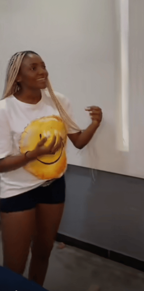 Everyone present got water splashed on their faces by Simi after giving wrong answers to her questions.
