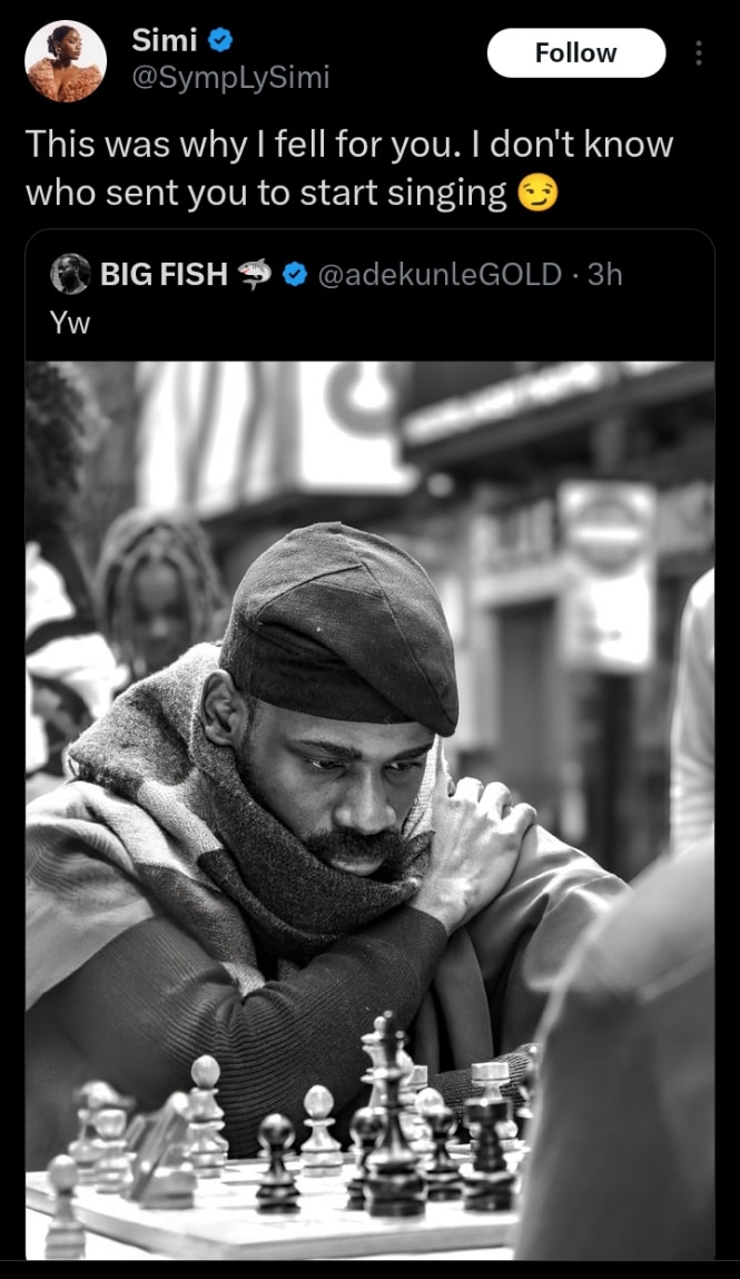 She wrote: “This was why I fell for you. I don’t know who sent you to start singing 😏”