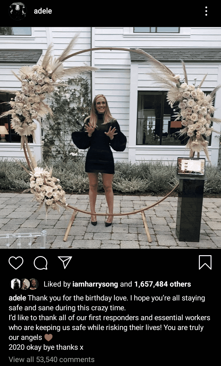 “Thank you for the birthday love. I hope you’re all staying safe and sane during this crazy time.