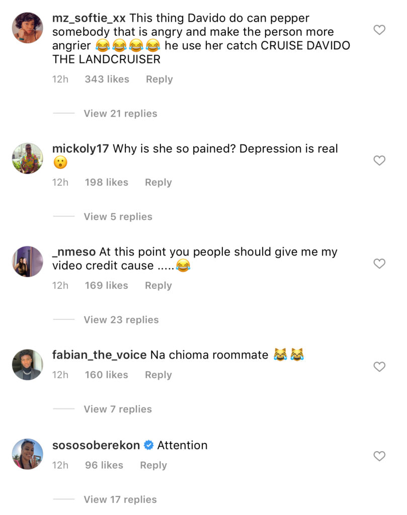 Reacting to the video, some users claimed the lady is a fan of Chioma and she is peeved that Davido allegedly cheated on Chioma with another lady in US after videos of him and an Atlanta-based model, Mya Yafai surfaced on the internet.