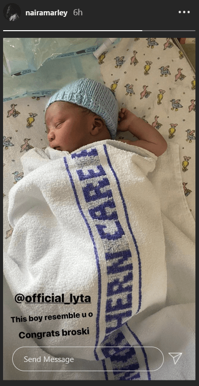 “@official_lyta This boy resemble u o. Congrats broski” he wrote as he shared a photo of the new born.