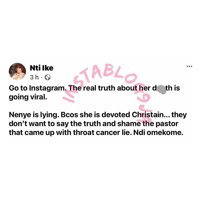 However, friends of the singer had now come out to allege that the phenomenal singer didn’t die of throat cancer but because of the beating she got from her husband.