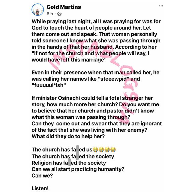 The friends of gospel singer, Osinachi Nwachukwu have alleged that the singer didn’t die of throat cancer but died of domestic abuuusse.