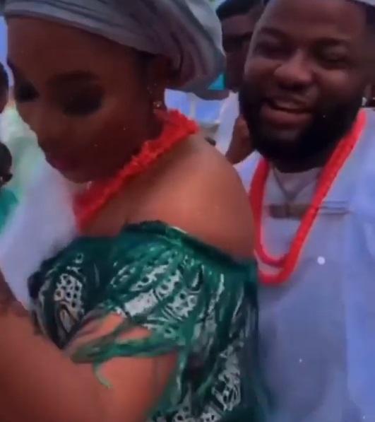 In the video serving rounds online, Skales is seen dancing joyfully with his new bride at their traditional wedding as they both dressed in cultural Igbo outfits.