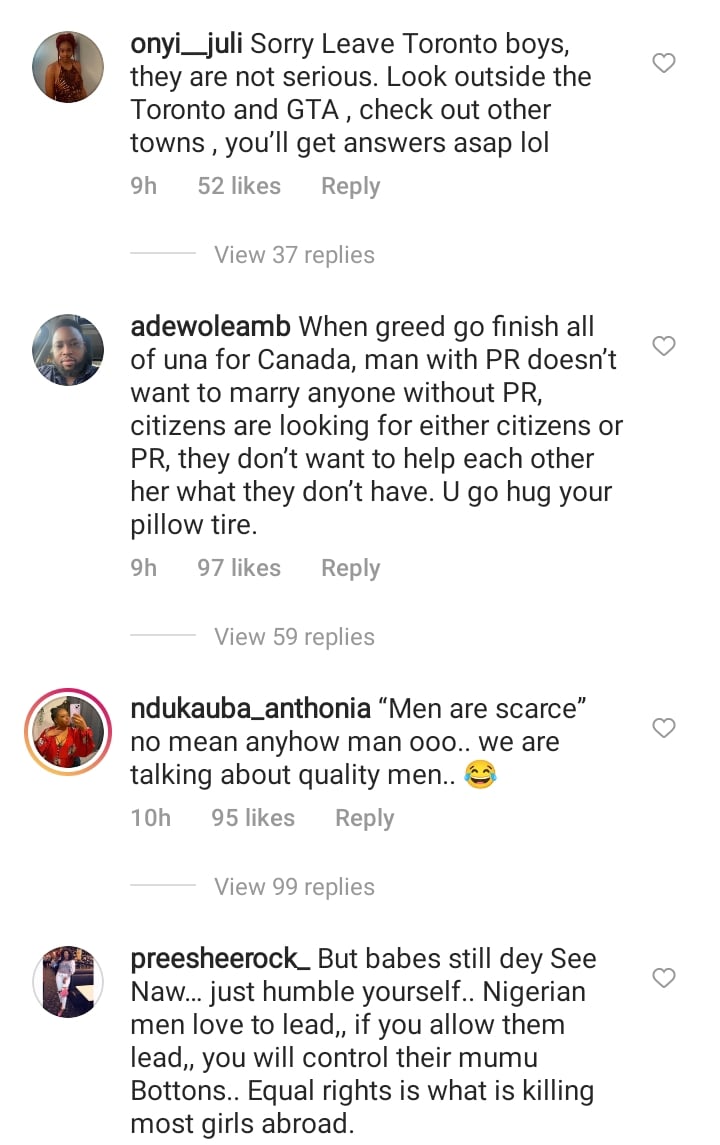 An abroad-based Nigerian woman has gone online to lament the inability to find a husband in Canada.