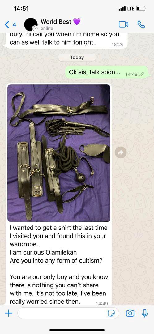 Texting him on WhatsApp, she urged the brother to come clean with her and tell her the truth if he had joined cultiiissm because he’s their only boy and she wouldn’t want to lose him.