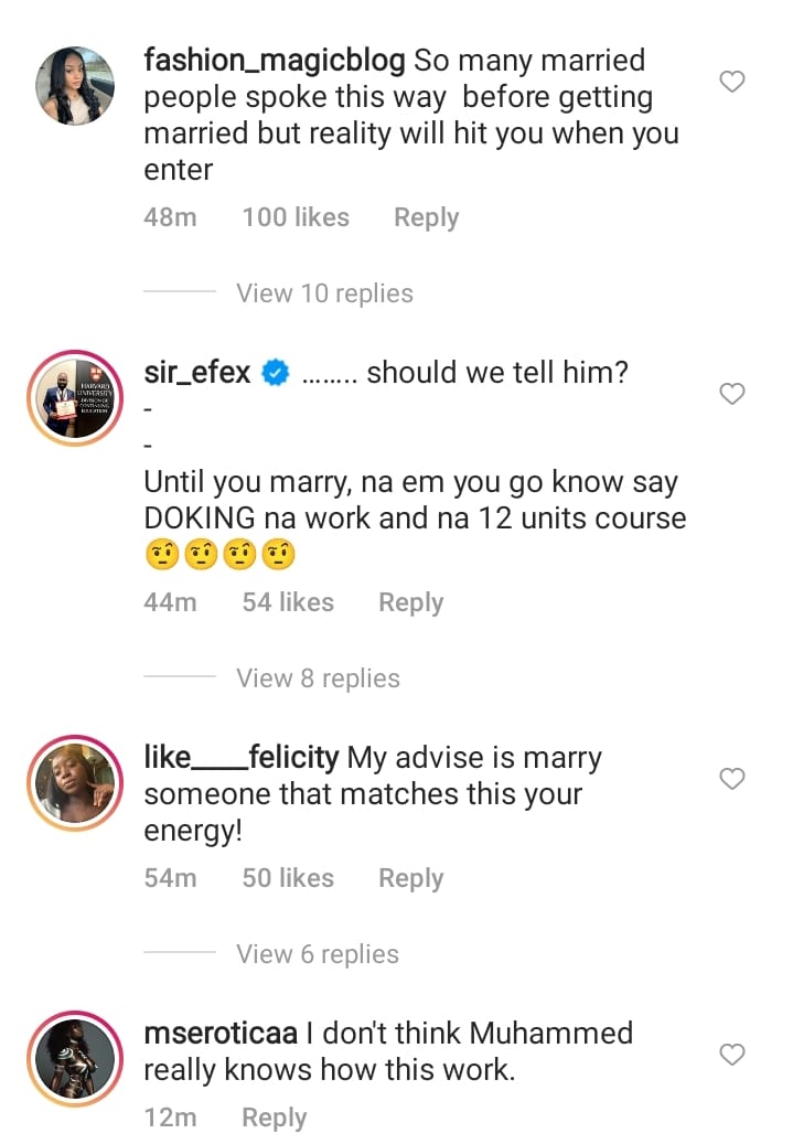 His post has stirred reactions, particularly amongst the married folks who have expressed their opinions: