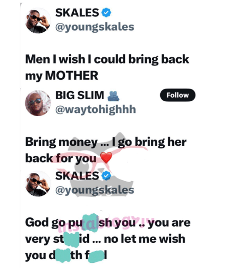 Singer, Raoul John Njeng-Njeng a.k.a Skales blows hot as he responds to a man who offered to bring his mom back to life.